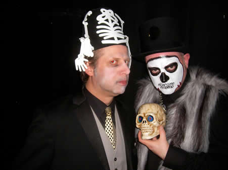 The celebration of all things ghoulish and ghastlywas led by His Dark Highness Frankenstein Sumatr, and his band of thouroughly evil henchmen, namely Dino "Dracula" Martini, Bugsy "Bloodsucker" Seagulland Son of Sam Jose who played the devil's music for the crowd of bloodthirsty Zombies. The vampiric VEGAS! Showghouls handed-out complimentary 'Elvis' dollars for the un-dead to gamble and win prizes at the roulette and blackjack tables in The Stardust Casino with croupiers The Fabulous Scott Freaks. Now THAT'S what we call Hallowe'en!!