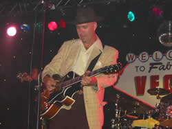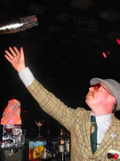 Vegas at the Barrowlands with the most sensational band in the whole swingin' green sphere, Big Bad Voodoo Daddy. What an intoxicating combination! What a gig! The Big Bad Voodoo band were fantastic, as always. Thanks to Scotty, Dirk and the boys for coming over to play for us once again. The crowd were amazing: surely the most stylish swingers and fabulous dancers yet seen at Vegas? Kylos and Sven manned the on-stage cocktail bar with panache and their lethal concoctions ensured the Vegas staff reached hitherto unexplored heights of intoxication.